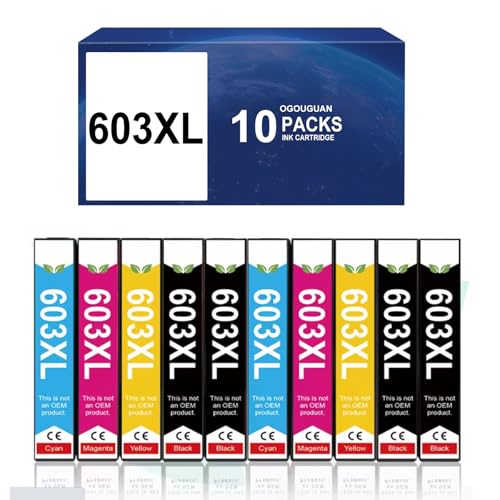 OGOUGUAN Caidi kompatibel patron för Epson 603 XL 603XL bläck för XP-2100 XP-2105 XP-2150 XP-2155 XP-3100 XP-3150 XP-3155 XP-4100 XP-4155 WF-28 10 WF-2820 WF-2830 WF-2840 WF-2850 (10 pack)