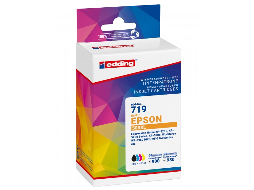 Edding Ink Replacement Epson 503Xl, T09r1 Kompatibelt Kombipack Svart, Cyan, Magenta, Gul Edd-719 18-719