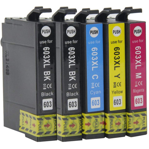 Epson 603 XL Set Plus BK (2xBK/C/M/Y). Kompatibla (ej Epson original) bläckpatroner. Fri frakt.