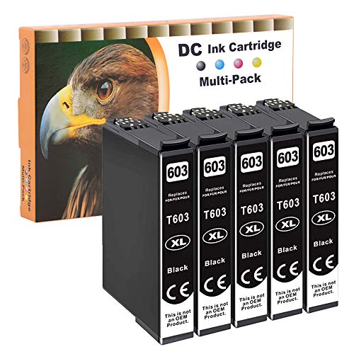 D&C 5X svarta bläckpatroner kompatibla med Epson 603 XL för Epson Expression Home XP-2100 XP-2105 XP-3100 XP-3105 XP-4100 XP-4105 XP-4155 Workforce WF-2810DWF WF-2830DWF WF-2835DWF WF-2850DWF