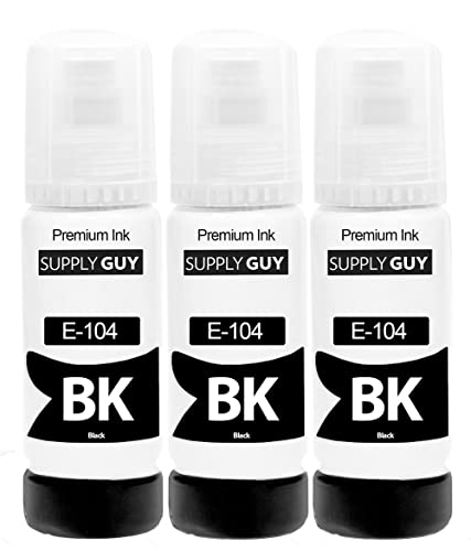 Supply Guy Bläck Svart kompatibel med Epson 104 för EcoTank ET-4800 ET-2871 ET-2870 ET-2862 ET-2861 ET-2811 (3 Bläckflaskor av 3x70ml)