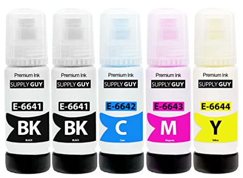 Supply Guy Bläck kompatibel med Epson 664 för EcoTank ET-2500 ET-2550 ET-2600 ET-2650 ET-3600 ET-4500 (5 Bläckflaskor av 5x70ml)