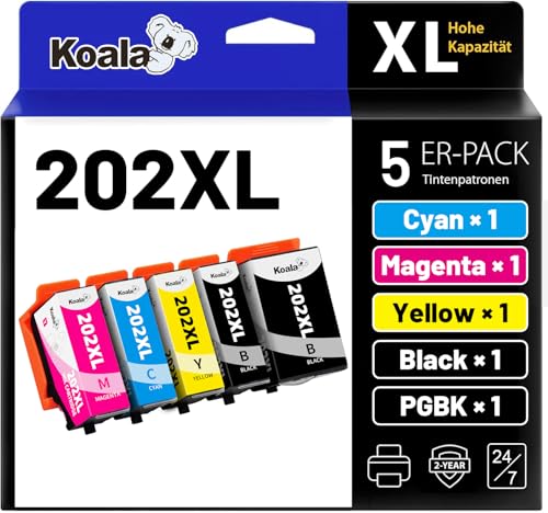 Koala Kompatibel bläckpatron för Epson 202 XL 202XL multipack för Expression Premium XP-6000 XP-6005 XP-6100 XP-6105 skrivare (svart/foto svart/cyan/magenta/gul, 5 delar)