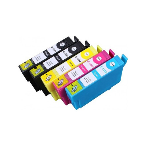 Epson T1285 XL Set Plus BK (T1281 x 2, T1282, T1283, T1284) BK/C/M/Y. Kompatibla bläckpatroner (ej Epson original).