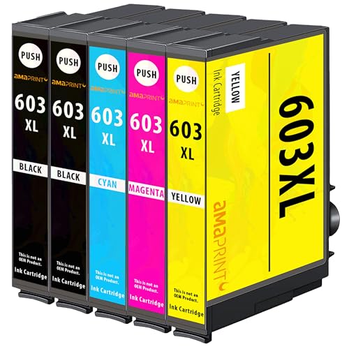 Amaprint 5 patroner kompatibel med Epson 603XL Multipack för WF2810 WF2820 WF2830 WF2835 WF2840 WF2845 WF2850 WF2870 XP2105 XP2150 XP2155 XP3105 XP3150 XP3155 XP4105 XP4150 XP4155