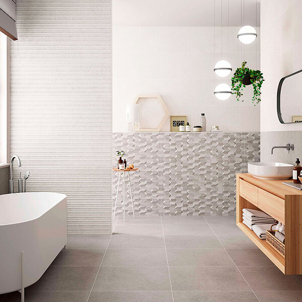 Hill Ceramic Dekor Kakel Erawan Vit Mönstrad Linje Matt 40x120 cm