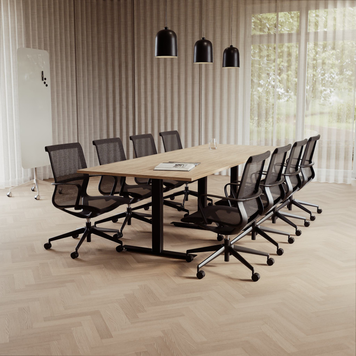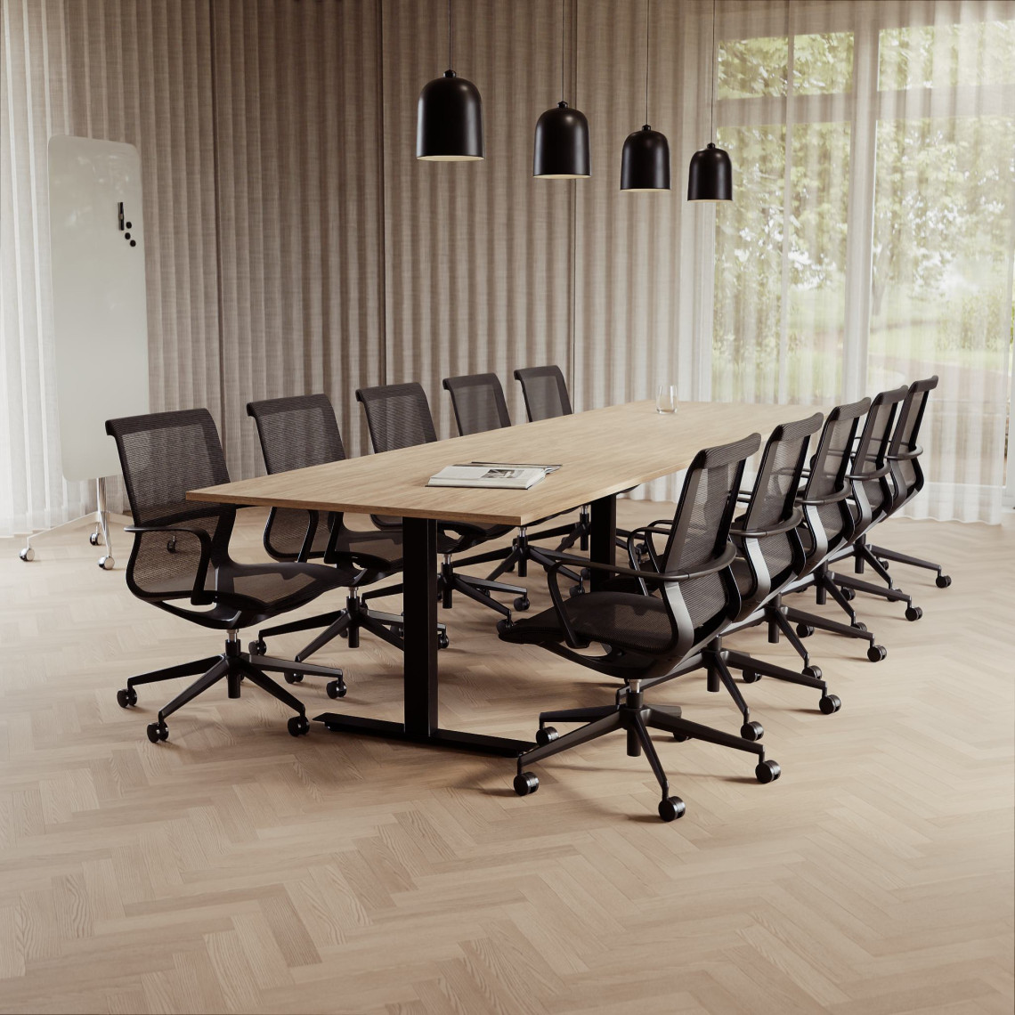 Konferensgrupp Modul + Ergo 285, Storlek 10 platser (360 cm), Bordsskiva Ek, Underrede Svart, Stol Svart
