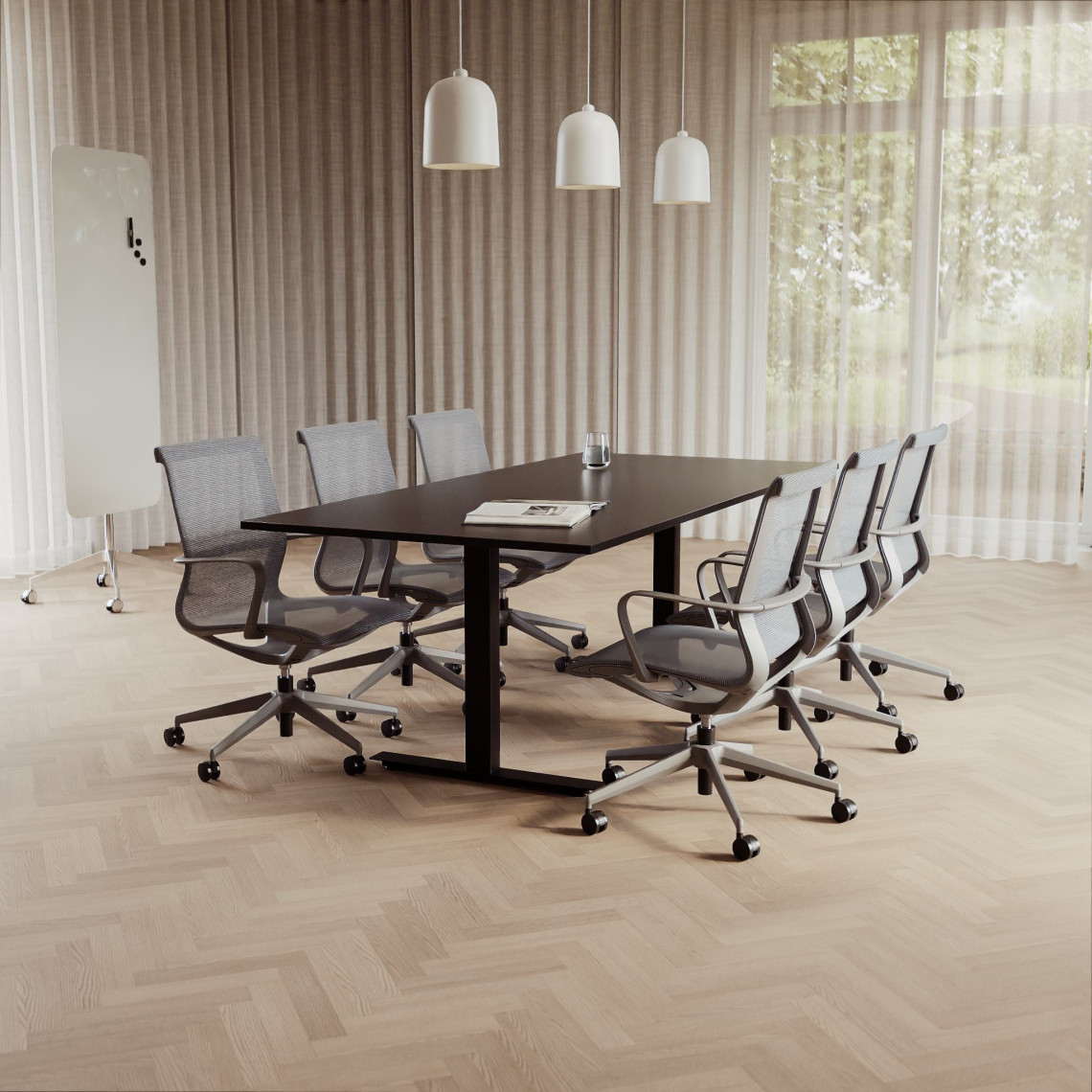 Konferensgrupp Modul + Ergo 285, Storlek 6 platser (220 cm), Bordsskiva Svart, Underrede Svart, Stol Grå