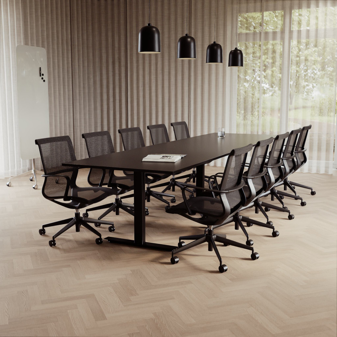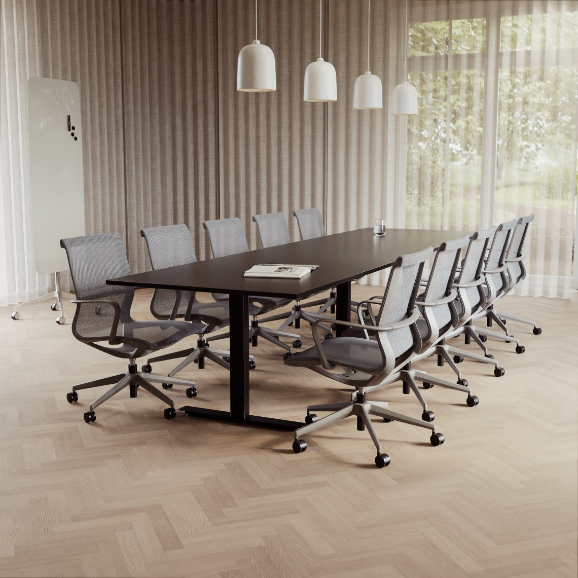 Konferensgrupp Modul + Ergo 285, Storlek 10 platser (360 cm), Bordsskiva Svart, Underrede Svart, Stol Svart