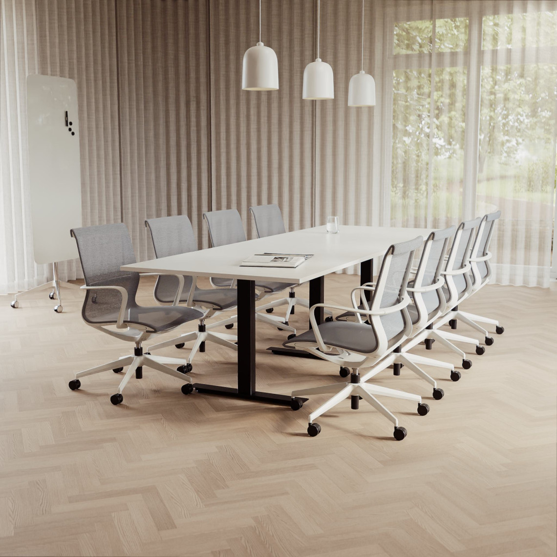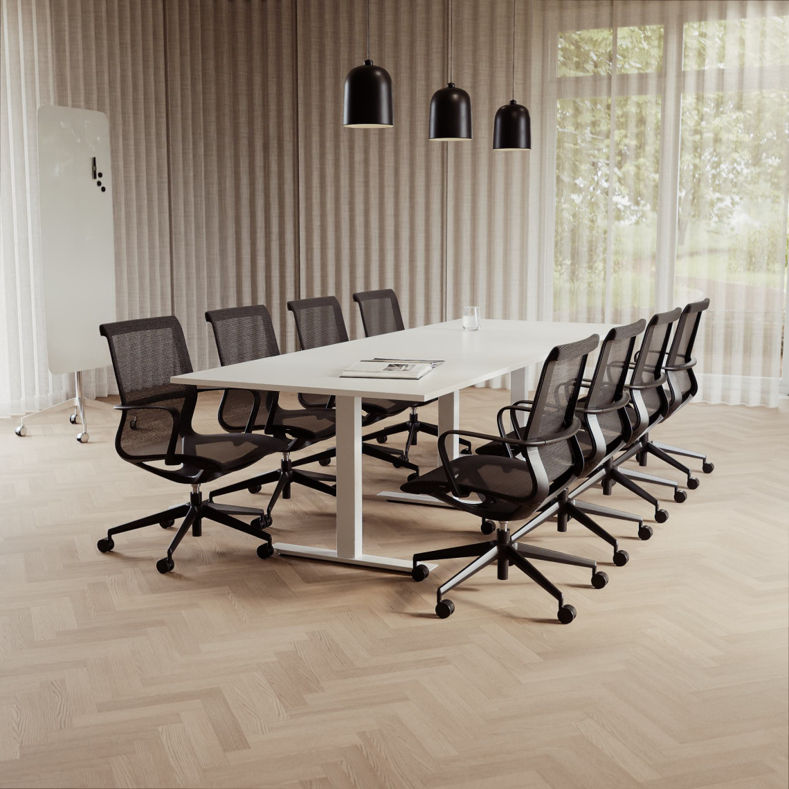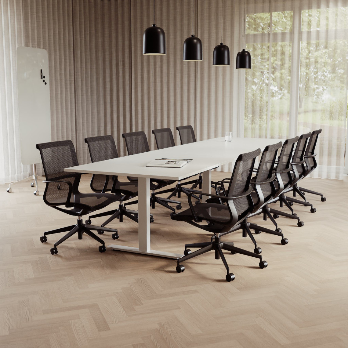 Konferensgrupp Modul + Ergo 285, Storlek 10 platser (360 cm), Bordsskiva Vit, Underrede Vit, Stol Svart