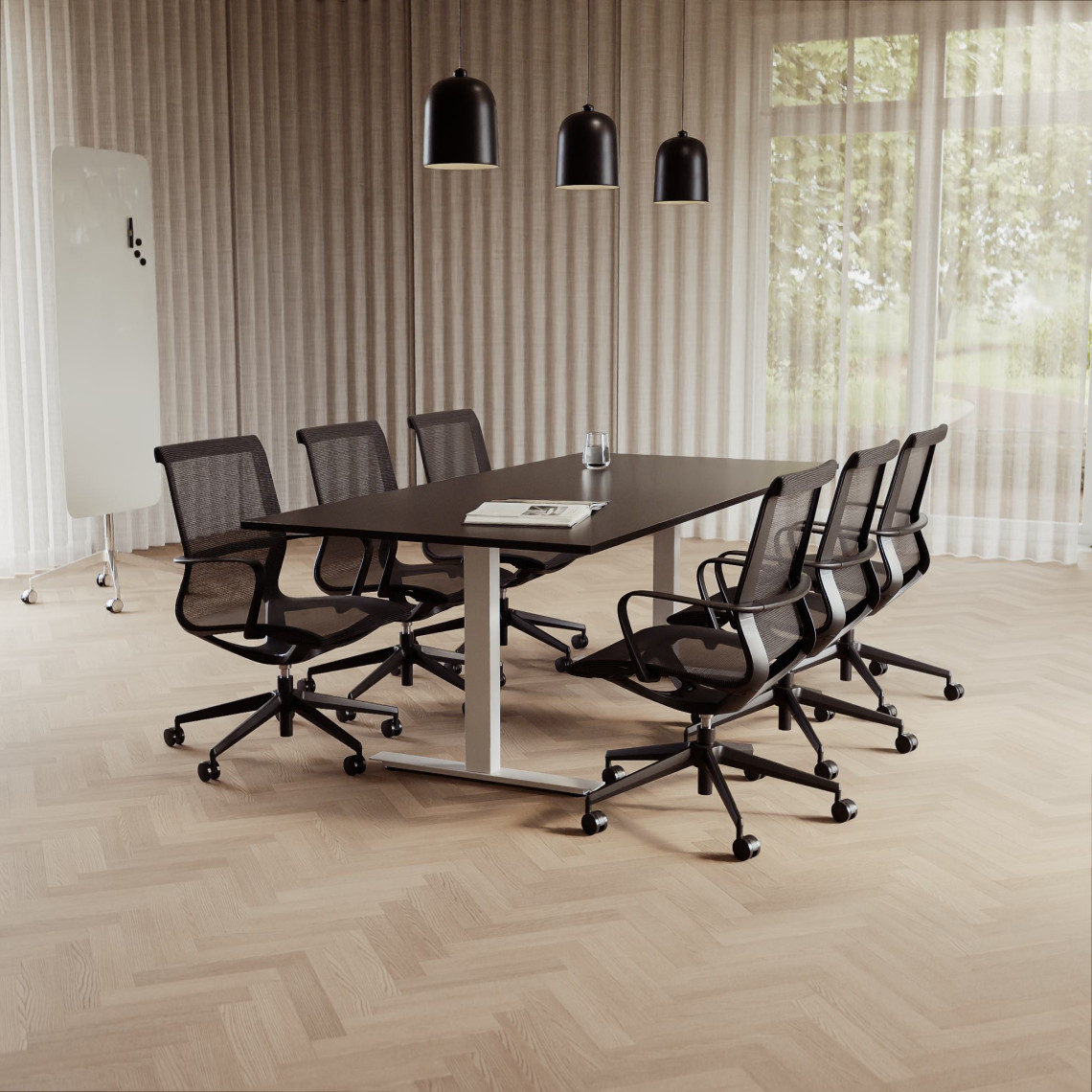 Konferensgrupp Modul + Ergo 285, Storlek 6 platser (220 cm), Bordsskiva Svart, Underrede Svart, Stol Svart