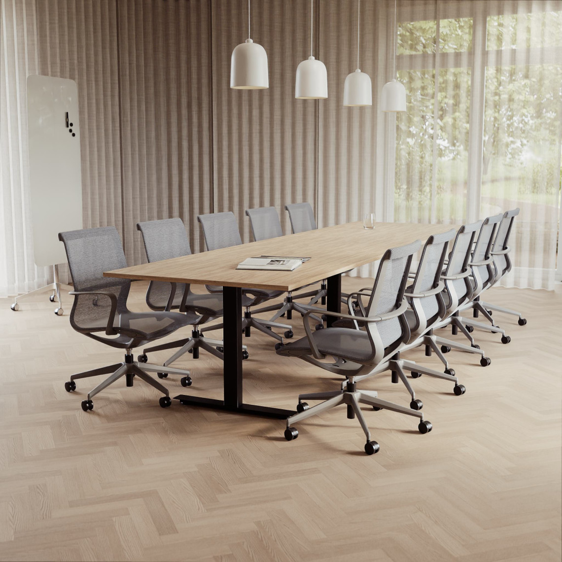 Konferensgrupp Modul + Ergo 006C, Storlek 10 platser (360 cm), Bordsskiva Ek, Underrede Svart, Stol Ljusgrå
