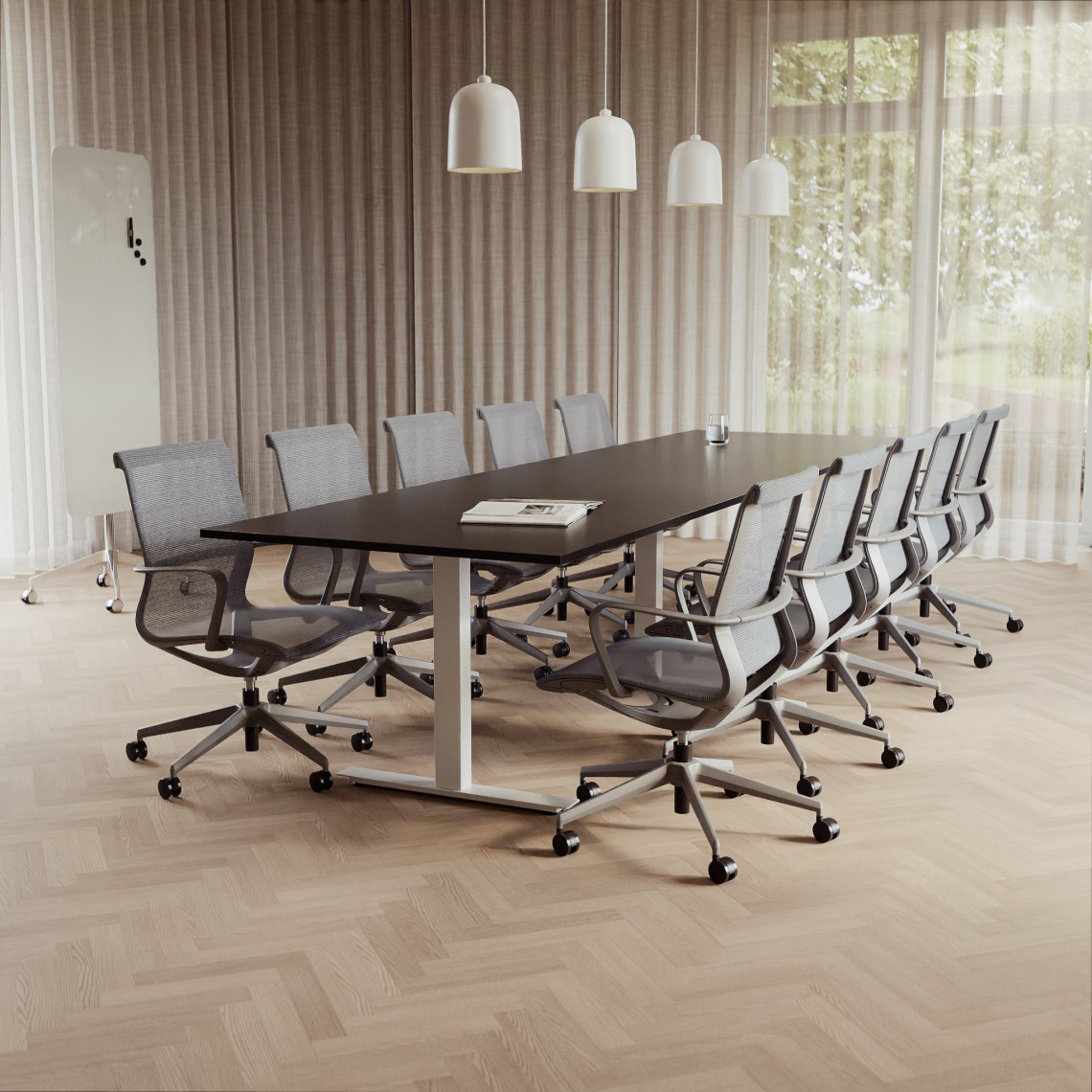Konferensgrupp Modul + Ergo 006C, Storlek 10 platser (360 cm), Bordsskiva Svart, Underrede Svart, Stol Ljusgrå