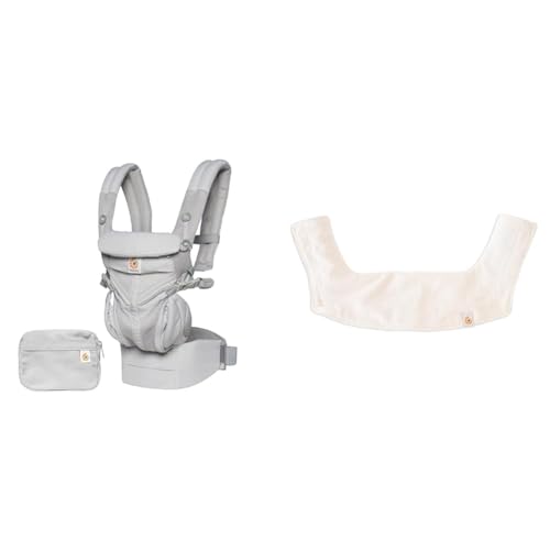 Ergobaby Bärsele för nyfödda till småbarn, 4-position Omni 360 cool luftnät (pärlgrå) & Ergobaby Bitskydd/Haklapp, För Omni 360, 360 Och Adapt, Extra Absorberande Bomull, Dubbla Lager, Natural