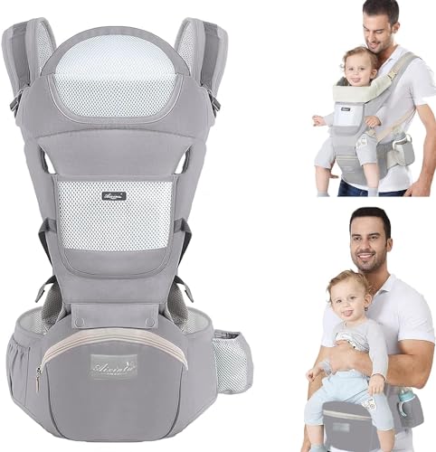 IULONEE Multifunktionell Ergonomisk Höftsits Bärsele Bärsele Nyfödd Till Småbarnstol Andningsbar Höftsits Bärsele Babybärduk Baby Småbarn Sling Bärselar Från Nyfödda Baby Hipseat Höftsits (Grå)