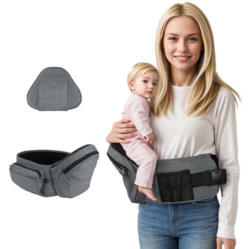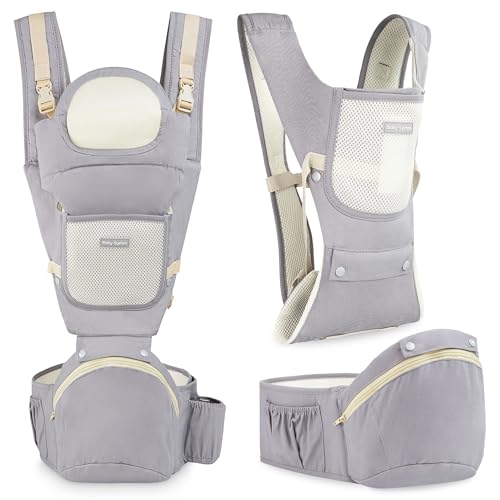 SUNVENO Ergonomisk babyhöftsits baby höftsitshållare, bärsele dekompression med justerbar rem och väska, baby höftpall praktisk baby framsäte för 0–20 kg baby, grå