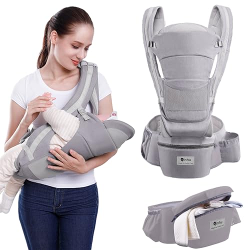 Ergonomisk bärsele med höftsits, 360-graderspositioner, mjuk och andningsbar, alla årstider, för nyfödda och småbarn, fotvandring, shopping, resor