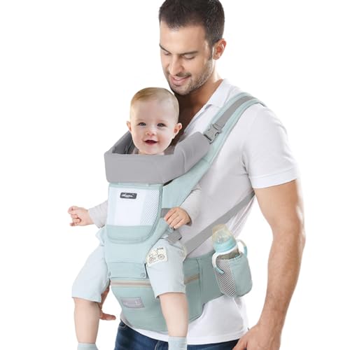 IULONEE Bärsele Med Höftsits Ergonomisk Ryggsäck för Småbarn Baby Axelväska Justerbar Främre och Bakre för Nyfödda 3 Månader till 3 år (3-20kg) Grön
