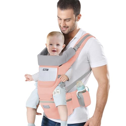 IULONEE Bärsele Med Höftsits Ergonomisk Ryggsäck för Småbarn Baby Axelväska Justerbar Främre och Bakre för Nyfödda 3 Månader till 3 år (3-20kg) (Rosa)