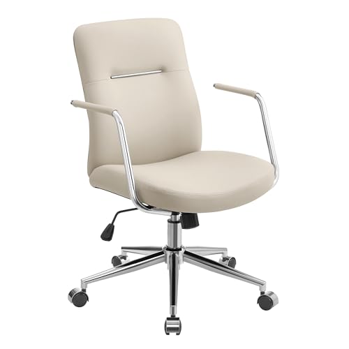 SONGMICS Vridbar kontorsstol, Ergonomisk Fåtölj, Lätt att rengöra PU-yta, Justerbar höjd, Bekvämt ryggstöd, Böjd sits, Kapacitet 150 kg, Cappuccino Beige OBG031W01
