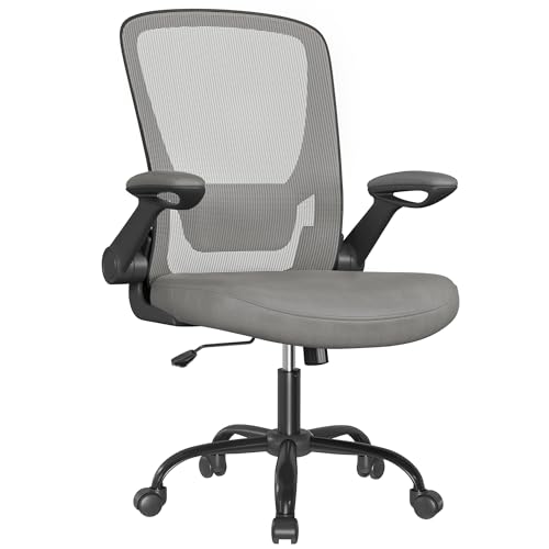 SONGMICS Ergonomisk kontorsstol i kraftigt tyg, fåtölj, vadderat ländryggsstöd, gungmekanism, 53 cm bred sits, hopfällbara armstöd, duvgrå OBN037G01