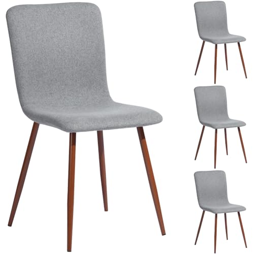 Shally Dogan Set med 4 stolar för matsal, träeffekt, stålfötter, mjuk sits, ergonomisk nordisk designstol, perfekt fåtölj för barnrum, kök, kontor (grå)