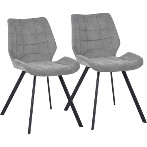Shally Dogan Set med 2 matstolar med svarta stålfötter och grå tygöverdrag, ergonomisk nordisk design, perfekt fåtölj för barnrum, kök, kontor