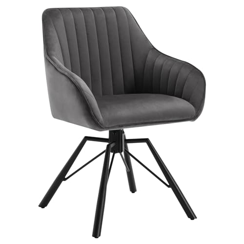WOLTU 1 x matrumsstol, roterbar, sammetsstol matsal, snurrstol, köksstol, fåtölj vardagsrum, stoppstol med armstöd, metallben, loungefåtölj ergonomisk, mörkgrå, EZS12dgr-1