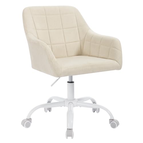 WOLTU Skrivstol roterbar, toalettbordsstol, snurrstol med hjul, kontorsstol ergonomisk, fåtölj höjdjusterbar, för hemmakontor, sovrum, kontor, tyg, beige + vit, BS164be