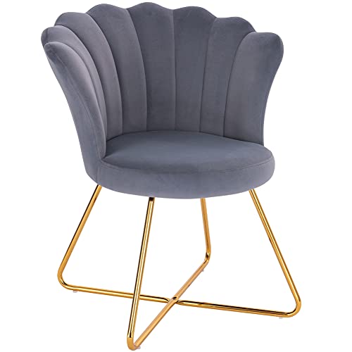 WOLTU Matrumsstol, köksstol, stol matsal vardagsrum, ergonomisk fåtölj, armstödsstol, stoppstol, sammet, metallben, mörkgrå, EZS02dgr-1