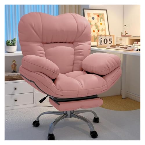 Agteruo Ergonomisk stol, vilstol med fotstöd och ländryggsstöd 360 graders roterande hemkontorsstol, vilstol fåtölj (rosa, med fotstöd)