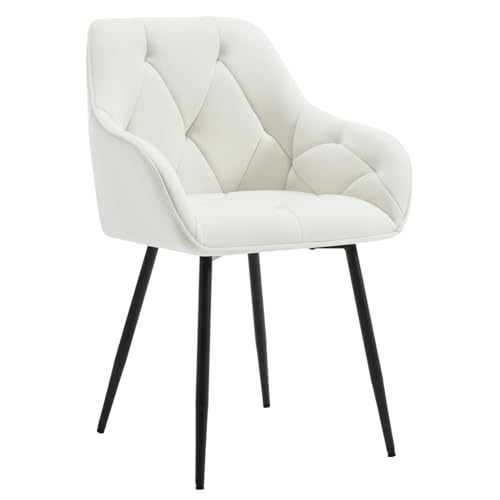 WOLTU Matrumsstol, köksstol, stol matsal vardagsrum, ergonomisk fåtölj, armstödsstol, stoppstol, sammet, metallben, kräm, EZS02cm-1