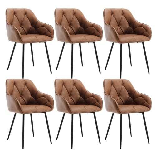 WOLTU Uppsättning med 6 matrumsstolar, köksstol, stol matsal vardagsrum, ergonomisk fåtölj, armstödsstol, stoppstol, sits av vintage-konstläder, metallben, brun, EZS03br-6