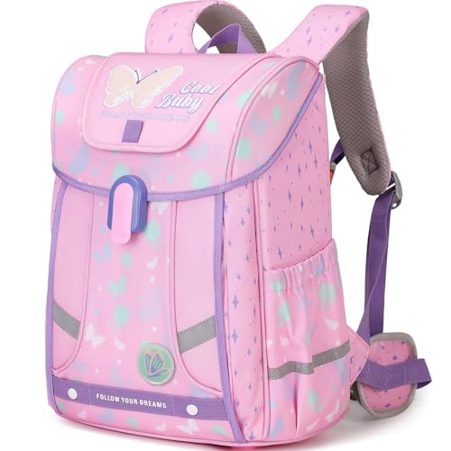 Amythe Skolryggsäck flickor pojkar ergonomisk 1–4. Klass med bröstbälte, 2025 barnryggsäck skola 6–10 år skolväska med avtagbart bälte och reflekterande -6187, ROSA, Ryggsäck Ryggsäckar