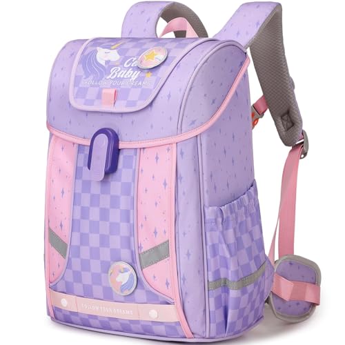 Amythe Skolryggsäck flickor pojkar ergonomisk 1–4. Klass med bröstbälte, 2025 barnryggsäck skola 6–10 år skolväska med avtagbart bälte och reflekterande -6187, lila, Ryggsäck Ryggsäckar