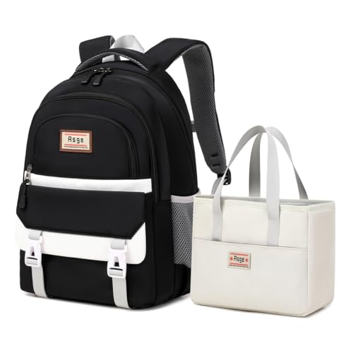 Asge Skolryggsäck flickor skolväska med ergonomisk design skolväska campus ryggsäck nylon vattentät dagryggsäck kvinnor fritid ryggsäck tonåring ryggsäckar trendig skolväska, Svart1, M, Avslappnad