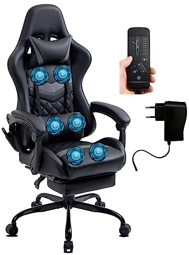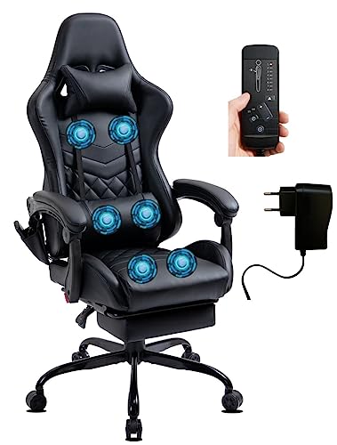 Delman Gamingstol Racingstol Kontorsstol Datorstol Massagefunktion med 6 vibrationspunkter Chefsstol Fuskskinn Ergonomiskt fotstöd 12-0037 (black)