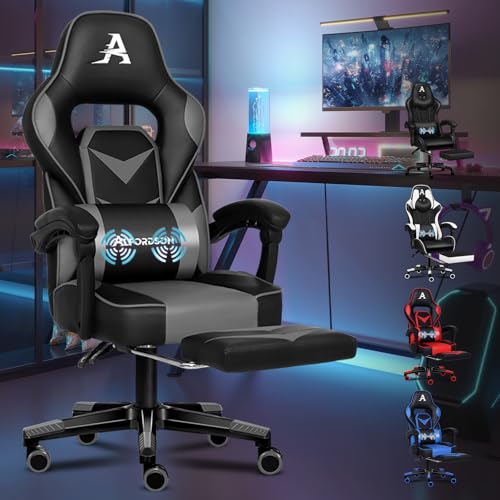 ALFORDSON Kontorsstol, med ergonomiskt stöd, lyxig komfort, fotstöd, nackstöd, hemstol, konstläder, grå