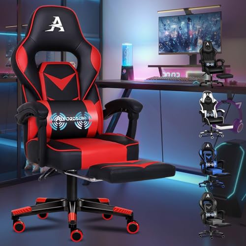 ALFORDSON Kontorsstol, med ergonomiskt stöd, lyxig komfort, fotstöd, nackstöd, hemstol, konstläder, röd