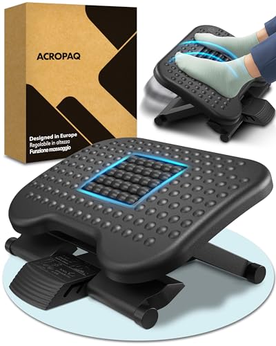 ACROPAQ Fotstöd – ergonomiskt fotstöd med justerbara höjder och avkopplande massagefunktion för kontorskomfort – AF004