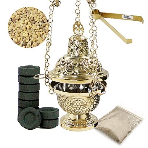 NKlaus 5 delar Rökelseset rökelseburk mässing med 100 g Eritrea rökelse koltång 40636
