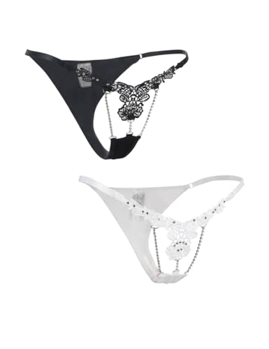 comeondear Stringtrosa dam sexiga erotiska underkläder G-string chic stor storlek trosor tanga smycken trosor låg midja underkläder stringtrosa T-shirt, 2-svart + vit, L