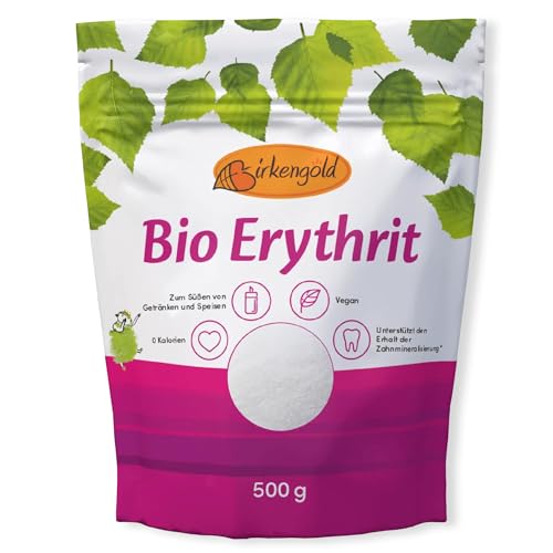 Birkengold Organic Erythritol, 500 g påse | från ekologiskt jordbruk | kalorifri sockerersättning| erytritol smakar som socker | vegan | tandvänlig | glykemiskt index 0