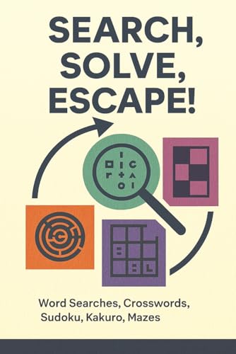Search, Solve, Escape! 60+ Puzzle Games: A mix amount of Word search, Crossword, Sudoko, Kakuro, Mazes, and Word Scramble: The Ultimate Collection, 6 ... Brain Tease, Full Solutions Included.