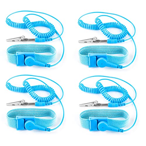 Rmeet Antistatiskt armband, 4 st antistatisk handledsrem jordningsarmband ESD-armband jordningsband med jordkabel och krokodilklämma förhindrar uppbyggnad av statisk elektricitet