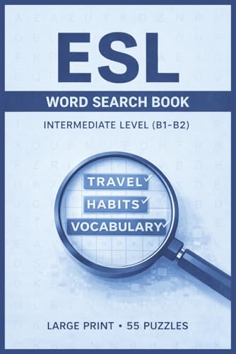 ESL Word Search – Intermediate Level (CEFR B1–B2): 55 Big Print Word Searches Featuring Intermediate English Vocabulary, Phrasal Verbs, Grammar, Conversation Topics, and Daily Routines