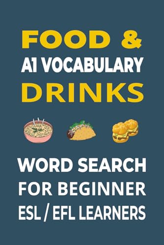 Food & Drinks Word Search for ESL Beginners: 55 Fun A1 Vocabulary Puzzles to Learn English | EFL Activity Book for Teens & Adults | 6x9 in, 110 Pages