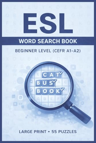 ESL Word Search – Beginner Level (CEFR A1–A2): 55 Large-Print Word Searches Featuring Beginner English Vocabulary, Verbs, Grammar, Daily Routines and Everyday Topics
