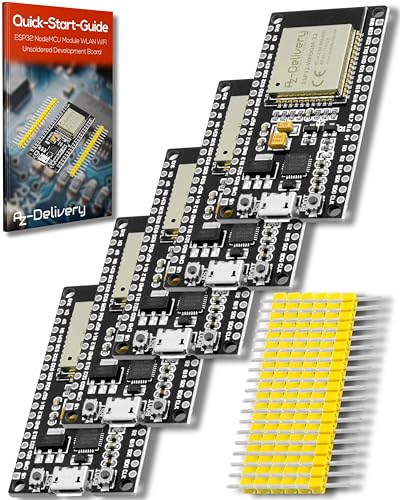 AZDelivery 5 x ESP-32 Dev Kit C osolderad NodeMCU-modul WLAN WiFi Development Board med CP2102 (efterföljande modell till ESP8266) och inklusive e-bok!