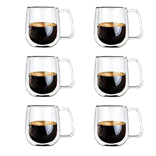 Vicloon Double Wall Glass Mugs, Borosilicate Glass Cups, for Tea, Coffee, Latte, Cappuccino, Espresso, Beer, 250ml, 6Pcs